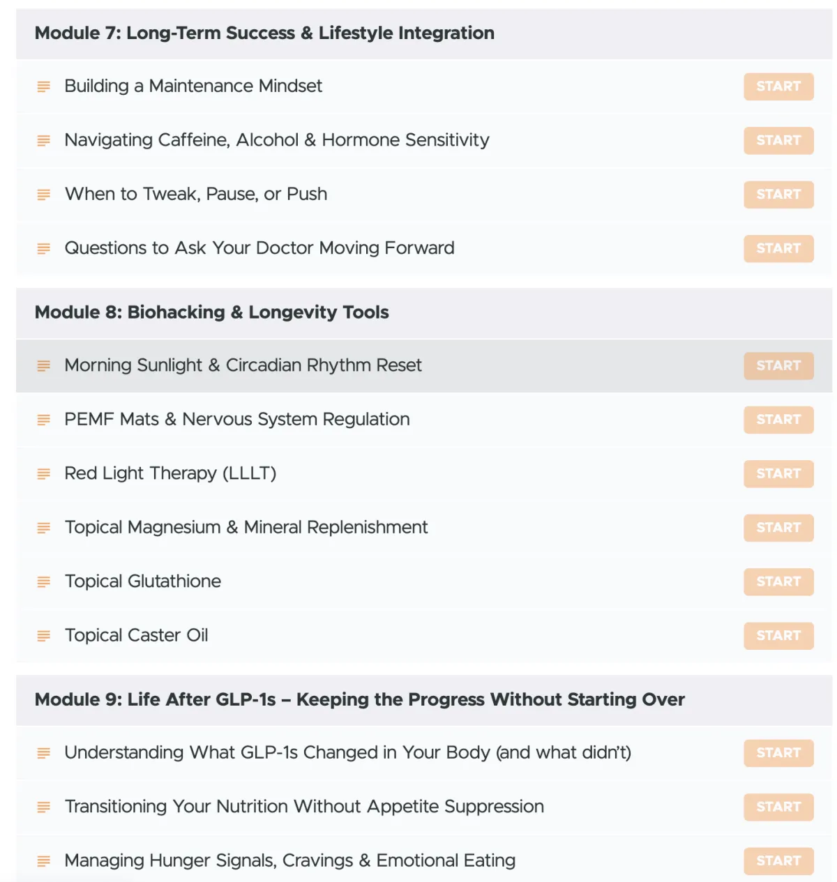 Whether you're staying on peptides or coming off, you’ll know exactly how to maintain your results, prevent regain, and live in sync with your biology.